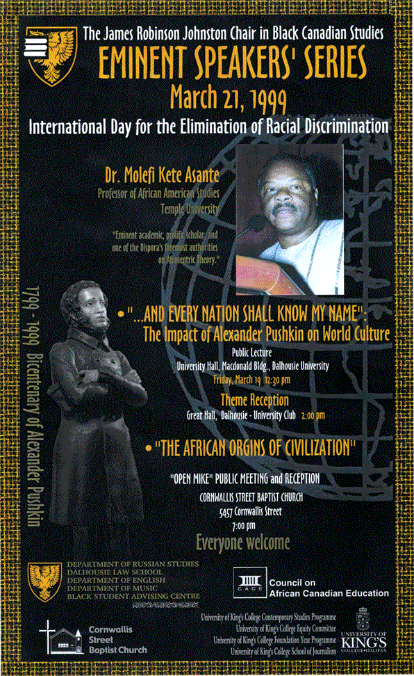 Black Community Meeting: The African Origins of Civilization. (Venue: Cornwallis Street United Baptist Church)